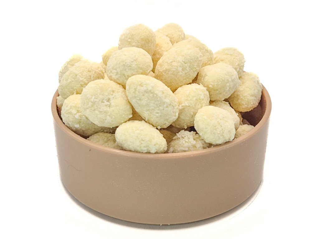 - Křupavé v nadýchaném kabátku z bílé čokolády a kokosu.